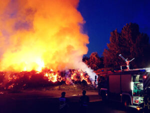 Seit 4 Uhr ist die Feuerwehr Bochum in Langendreer im Einsatz. Auf einer städtischen Kompostieranlage hat ein 6.000 Kubikmeter großer Haufen mit Grünabfällen Feuer gefangen. Rund ein Drittel, als etwa 2.000 Kubikmeter, stehen in Flammen.