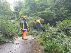 Am Gerätehaus wurde die Einsatzbereitschaft wiederhergestellt und die eingesetzten Kettensägen gereinigt und mit Schmierstoffen sowie Kraftstoff befüllt.