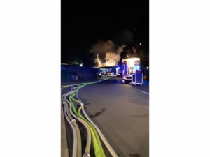 Vor Ort unterstützten sie bei dem Aufbau einer großflächigen Wasserversorgung. Auch das LF20 KatS wurde mit seiner Pumpe in die Wasserversorgung mit eingebunden. Im Anschluss ging ein Trupp unter Pressluftatmern mit einem C-Rohr zur Brandbekämpfung vor und führte umfangreiche Löschmaßnahmen durch.