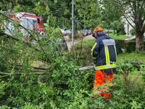Während des wöchentlich stattfindenden Übungsdienstes wurden die Kameraden/Kameradinnen in die Straße „Auf dem Aspei“ gerufen, welche nur weniger Meter vom Gerätehaus entfernt liegt. Hier meldete ein Anwohner, dass ein Baum auf die Straße zu fallen droht.