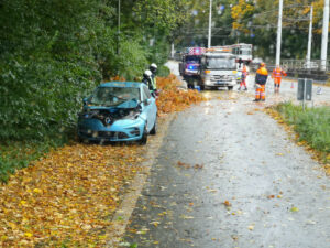 In drei Fällen mussten umgestürzte Bäume zersägt und beiseite geräumt werden. In einem Fall traf ein herabstürzender großer Ast direkt auf einen fahrenden PKW. Die Insassen hatten jedoch großes Glück und blieben unverletzt.