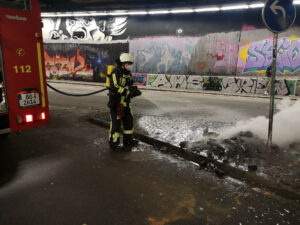 Nur kurze Zeit nach Einsatz 01/22 wurde die Mannschaft erneut alarmiert. In einem Tunnel der Universitätsstraße sollte ein Papierbehälter brennen.