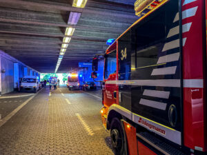 Während des 24-Stunden-Dienstes alarmierte uns die Leitstellte um 14:49 Uhr ins Parkhaus des Uni-Centers. Hier sollte ein Müllbehälter brennen.
