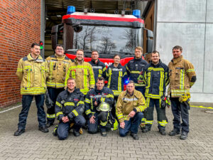 Wir dürfen uns über einen neuen Gruppenführer freuen! Am heutigen Tage hat Lukas Van Dieken den in hybriden Lehrgang vom Institut der Feuerwehr in Münster nach Ablegen einer schriftlichen Prüfung erfolgreich bestanden. Lukas ist der erste unserer Einheit, der den Lehrgang in einer neuen Form absolviert. Die theoretischen Einheiten wurden per Fernstudium über eine Videokonferenz vermittelt. Die praktischen Übungen fanden dann in Münster statt. Lukas durfte dann als Gruppenführer eingesetzt werden – unter Anleitung von erfahrenen Gruppen-/Zugführer*innen aus der Einheit. Nach den ersten Erfahrungen als Gruppenführer stand dann die Abschlussprüfung an.