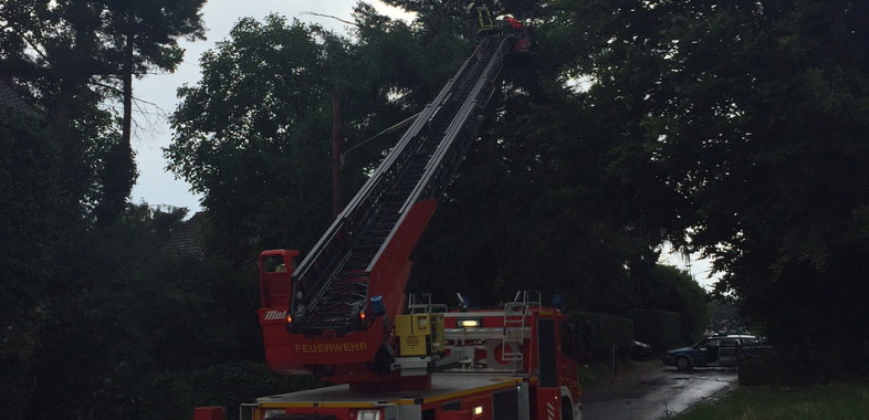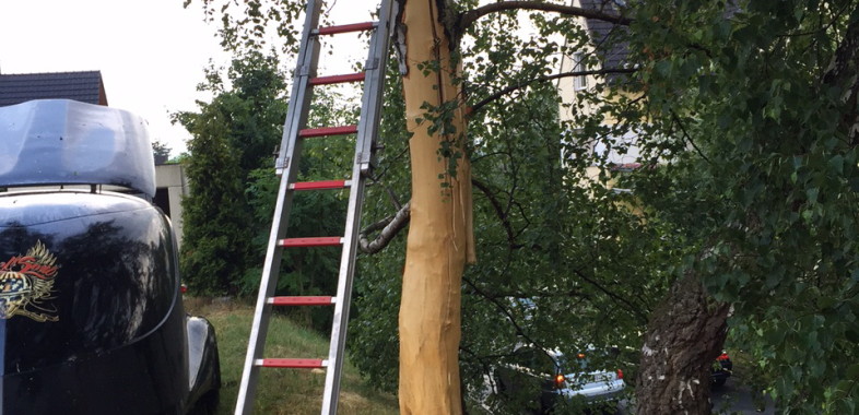 Durch einen Blitzschlag wurde eine ca. 15m hohe Birke komplett gespalten. Der Baum wurde gefällt und bei Seite gelegt. Der Einsatz war nach ca. einer Stunde abgeschlossen.