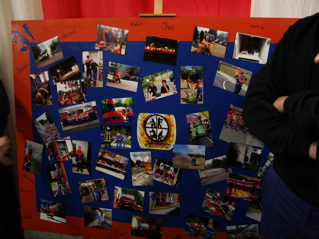 Zur Überraschung der Betreuer hatten sich die Kids auch etwas einfallen lassen. Als Zeichen ihrer Dankbarkeit erstellten sie komplett ohne jegliche Hilfe eines Betreuers zusammen eine Collage mit Bildern aus unterschiedlichsten Ereignissen im Laufe der letzten 5 Jahre. Außerdem bekamen sie einen Feuerwehr-Präsentkorb.