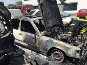 Die Löscheinheit wurde während der Mittagszeit zu einem PKW-Brand an der Ruhr-Universität gerufen. Auf der Anfahrt wurde bereits weitergeleitet, dass vermutlich nicht nur einer, sondern zwei PKW brannten. Dies bestätigte sich auch bei Ankunft an der Einsatzstelle. Die beiden PKWs wurden zusammen mit der Berufsfeuerwehr unter Atemschutz mit dem Schnellangriff gelöscht und zusätzlich die nebenliegenden Fahrzeuge gekühlt. Anschließend wurde noch die Spritleitung abgeklemmt und ausgelaufene Betriebsstoffe abgestreut.