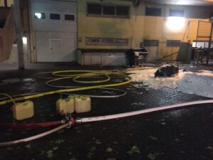 Gegen 20.2o Uhr wurde die Löscheinheit zu einem brennenden Papierkorb alamiert. Beim Eintreffen der ersten Kräfte wurden drei brennende Papiercontainer vorgefunden. Diese wurden zunächst mit einem C-Rohr gelöscht und anschließend mit Schaum abgedeckt. Anschließend wurden die weiteren Container und die Umgebung mit der Wärmebildkamera kontrolliert.