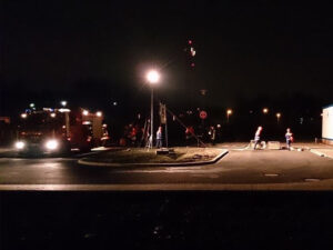 Hierzu teilten wir uns in zwei Gruppen auf und verteilten uns auf die beiden Fahrzeuge. Es wurde jeweils ein Lichtmast aufgebaut und in Betrieb genommen, detailreich auf den Aufbau eingegangen und der Umgang mit dem Stromgenerator erklärt und gezeigt.