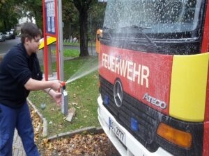 Wir kontrollierten die Feldbetten für Übernachtungen im Zeltlager oder im Feuerwehrhaus bei Berufsfeuerwehrtagen auf Vollzähligkeit und Funktionalität, räumten unsere Spinde auf und reinigten sie, wuschen alle vier Fahrzeuge von innen sowie von außen und checkten alle weiteren Materialien und Geräte.