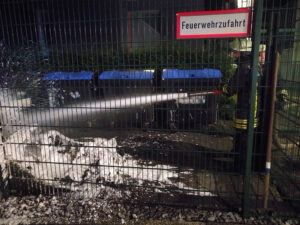 Direkt im Anschluss an den vorherigen Einsatz wurde die Löscheinheit Querenburg zu einer brennenden Mülltonne an der Straße Auf der Papenburg alarmiert. Das Feuer wurde durch das ersteintreffende LF 8 mit Hilfe des Schnellangriffs gelöscht, anschließend wurden die Überreste der Kunststofftonne mit Schaum abgedeckt. Die Einsatzstelle wurde der Polizei übergeben.