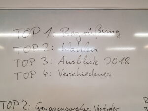 Zudem standen auch Wahlen unter den Jugendlichen wie beispielsweise für die Gruppensprecher, Schriftführer usw. an. Die Gruppe wagte anschließend einen Ausblick in 2018; planten bereits die ersten Aktionen, äußerten Wünsche, diskutierten über Ausflugsziele u.v.m.