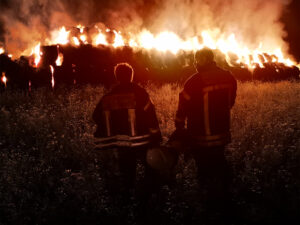 Bochum (ots) – Seit 23.30 Uhr ist die Feuerwehr Bochum an der Limbeckstraße in Bochum-Werne im Einsatz. Auf einem Feld brennen zwei Strohmieten mit einer Größe von jeweils 8 Meter Höhe, 8 Meter Breite und 35 Meter Länge. Insgesamt stehen rund 300 Rundballen in Flammen. Eine Gefahr für Gebäude besteht nicht, zwei Landwirtschaftsmaschinen konnten rechtzeitig in Sicherheit gebracht werden. Einsatzkräfte der Berufs- und Freiwilligen Feuerwehr sind vor Ort. Im Nahbereich des Brandortes kann es zu Geruchsbelästigungen kommen. Die Löscharbeiten werden voraussichtliche mehrere Stunden in Anspruch nehmen.