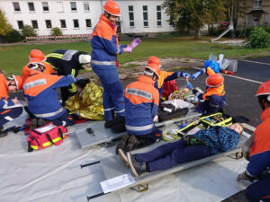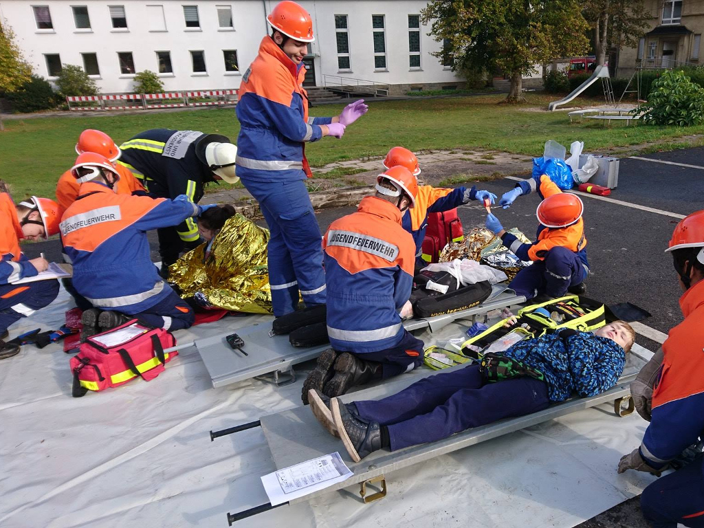 Eine Reihe verletzter musste am Behandlungsplatz durch die Jugendlichen versorgt und betreut werden.
