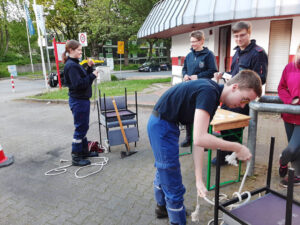 Auch das für manche etwas unbeliebte Thema Knoten und Stiche kann Spaß machen. Dass dies möglich ist, zeigten die Betreuer den Jugendlichen beim vergangenen Übungsdienst. Aufgeteilt in zwei Gruppen mussten verschiedene Knoten und Stiche bewältigt werden, um den Wettkampf für das jeweilige Team zu entscheiden. Auf spielerische Art und Weise konnte das erlernte angewendet werden um das Team nach vorne zu bringen.