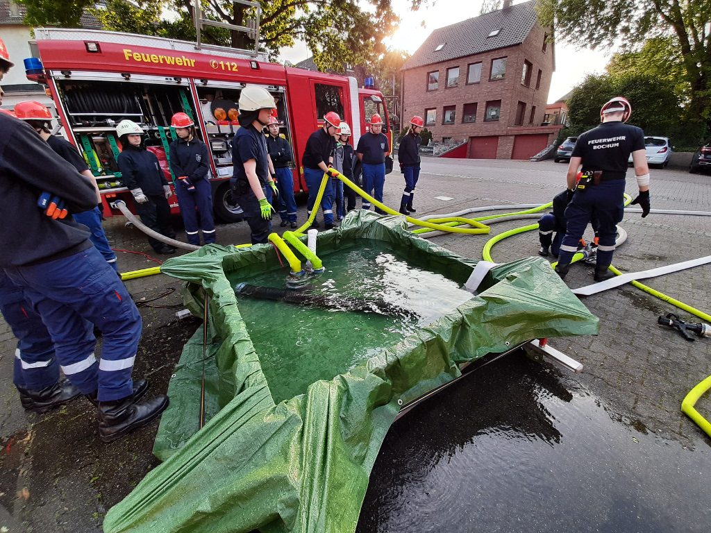 Aufgrund dessen wurde heute der Umgang mit den Pumpen geübt und das Fachwissen gestärkt. Nach dem theoretischen durchsprechen wurde anhand von praktischen Übungen sowohl die Fahrzeugpumpen, als auch die Tauchpumpen ausprobiert.