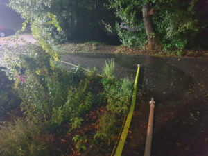 Um 23:04 Uhr folgte dann der nächste Einsatz. Am Anemonenweg in Bochum-Werne lief Wasser in den Keller eines Einfamilienhauses. Die Einsatzkräfte setzten eine Elektro-Tauchpumpe sowie einen Wassersauger ein und pumpten ca. 2500 Liter Wasser aus dem Keller hinaus.