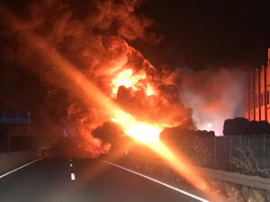 Die LE Querenburg erhielt den Auftrag, den direkt an die Brandstelle angrenzenden Bereich der A40 zu kontrollieren und die angrenzenden Buschwerke und Verkehrsschilder vor der Hitzeeinwirkung durch die hochgeschlagenen Flammen zu schützen und somit eine Brandausbreitung zu verhindern.