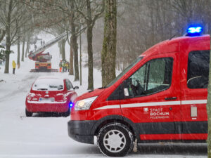 An der Einsatzstelle wurden die am Vortag montierten Schneeketten sicherheitshalber noch einmal nachgezogen. Auch nach der Ankunft am Gerätehaus wurde der Vorgang wiederholt.