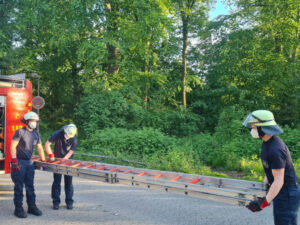 Am heutigen Tage widmeten wir uns der Vornahme der vierteiligen Steckleiter. Besonders im Fokus standen hier die jungen Anwärter, welche für die Teilnahme am Grundlehrgang vorher u.a. die Leiter besteigen müssen, um zu beweisen, dass sie dieser Situation gewachsen sind.