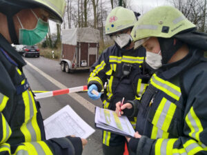 Um 11:40 Uhr wurde die LE Querenburg mit dem ABC-Erkunder zum Zeppelindamm beordert. Am Straßenrand war eine von einer Flüssigkeit ausgehende Dampfentwicklung bemerkt worden.