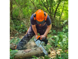 Nach einem theoretischen Teil mit schriftlicher Prüfung eine Woche zuvor stand dann heute der praktische Teil an, um erste Erfahrungen an der Motorkettensäge zu sammeln und den Umgang mit verschiedenen Schnitttechniken und in unterschiedlichen Situationen zu üben.