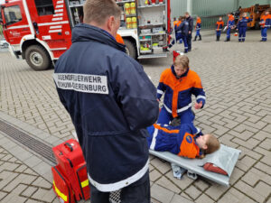 Hierbei mussten die Jugendlichen ihr bisher erlerntes Feuerwehrwissen unter Beweis stellen. Gerätschaften erklären, eine Einsatzstelle absichern oder Grundtätigkeiten in erster Hilfe sind nur drei der zahlreichen Aufgaben, welche die Jugendlichen absolvierten. Alle waren jedoch durch die Übungsdienste in den einzelnen Jugendgruppen bestens vorbereitet, sodass auch jede*r die Prüfungen bestand! Auch Mitglieder*innen, welche bereits beide Flammen haben, sind ebenfalls nach Altenbochum gefahren, um ihre Kamerad*innen zu motivieren.