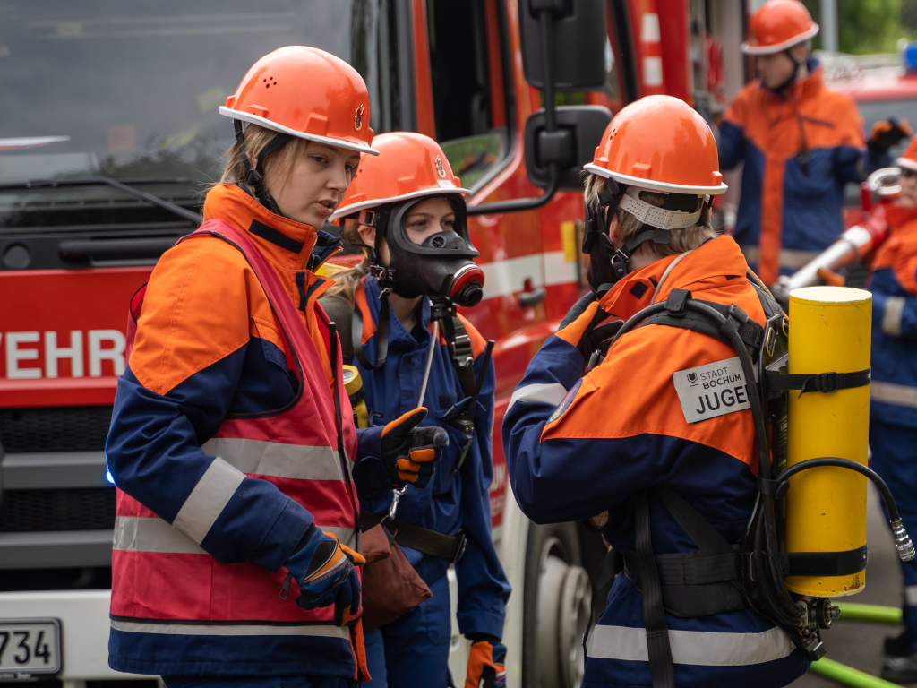 Der erste Einsatz ließ nicht lange auf sich warten, auf einer Baustelle brannte ein Baucontainer. Mit mehreren Strahlrohren konnte der angenommene Brand schnell gelöscht werden. Im Laufe des Tages kamen noch weitere Einsätze wie: Abgestürzte Person, Kleintier im Baum, Gasexplosion mit Menschenleben in Gefahr, Verkehrsunfall mit brennendem PKW, PKW-Brand (Fehlalarm), Feuer in einem Garten, auf die Jugendlichen zu.