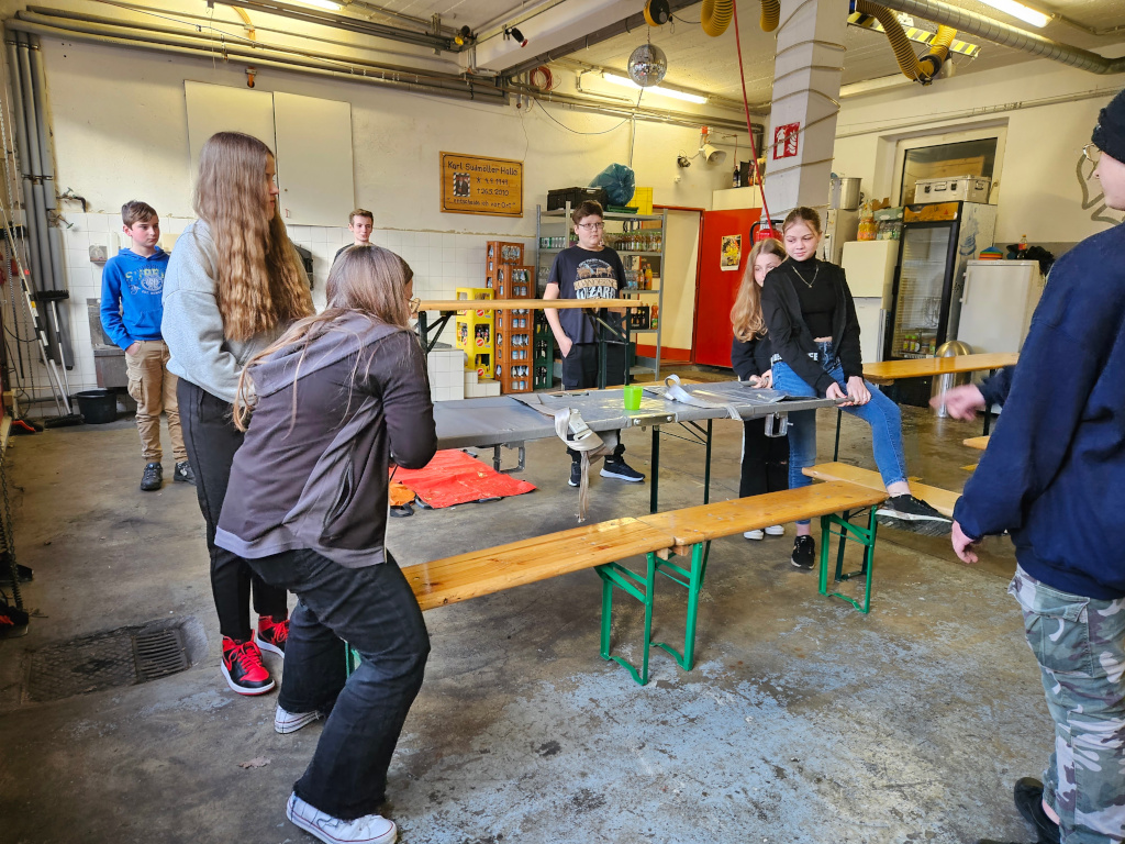 Beim heutigen Übungsdienst haben wir eine Feuerwehr Olympiade veranstaltet. Wir wurden in zwei Gruppen aufgeteilt und mussten im Anschluss einen Parcour meistern. Dieser bestand aus vier Stationen. An Station 1 mussten Schläuche auf ein Ziel gerichtet ausgeworfen werden, an Station 2 mussten wir zusammen eine Trage, auf welcher ein Becher gefüllt mit Wasser stand über verschiedene Hindernisse manövrieren. An Station 4 wurde herausgefordert, wer am schnellsten einen Nagel in ein Brett schlägt. Zu guter Letzt musste an Station 4 jeder noch einen im Übungsdienst gelernten Knoten machen. Die Gewinner-Gruppe mit den meisten Punkten durfte sich am Ende ein Abschluss-Spiel ausdenken. Das Team entschied sich für Flaschen Kegeln – Dieses bestand darin, die gefüllten Flaschen der Kamerad:innen mit einem Ball abzuwerfen.