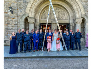 Freiwillige Feuerwehr – Das ist für viele die zweite Familie. Zusammenhalt und Kameradschaft ist für uns sehr wichtig. Daher überraschten wir heute unseren Kameraden Florian und seine Braut Katharina vor der Kirche St.Elisabeth in Gerthe, in welcher sie sich das „Ja-Wort“ gaben, mit einem Spalier und einem Geschenk der Löscheinheit sowie einem Strauß Blumen.