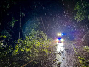 So wurden im Laufe des Vormittages insgesamt 5 Einsätze abgearbeitet. Bäume versperrten Straßen, Fußwege und/oder lagen auf Autos. Zu Personenschäden kam es glücklicherweise nicht.