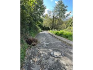 Dort war ein Morscher Baumstumpf abgebrochen und auf die Straße gerollt und ragte nun leicht in die Fahrbahn hinein. Wir zerkleinerten den Stumpf mit der Axt und legten in zur Seite.
