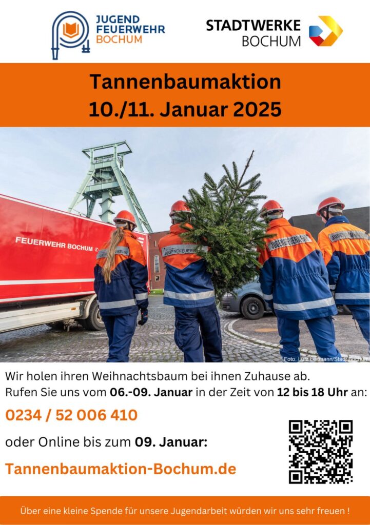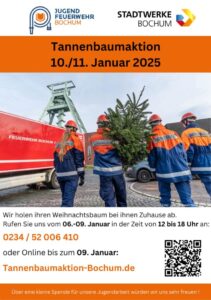 Auch in 2025 findet wieder die Tannenbaumaktion der Jugendfeuerwehr Bochum statt. Die Jugendlichen freuen sich schon darauf die Tanne bei Ihnen zuhause abzuholen. Wer das Nadelgehölz abgeholt haben möchte, kann sich vom